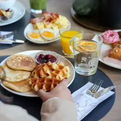 The Mother's Day brunch offers a rich variety of breads, salads, meat, fish, and vegetarian options. Everything is fresh, seasonal, and carefully prepared by our chefs. For children, there is a play area where they can entertain themselves.